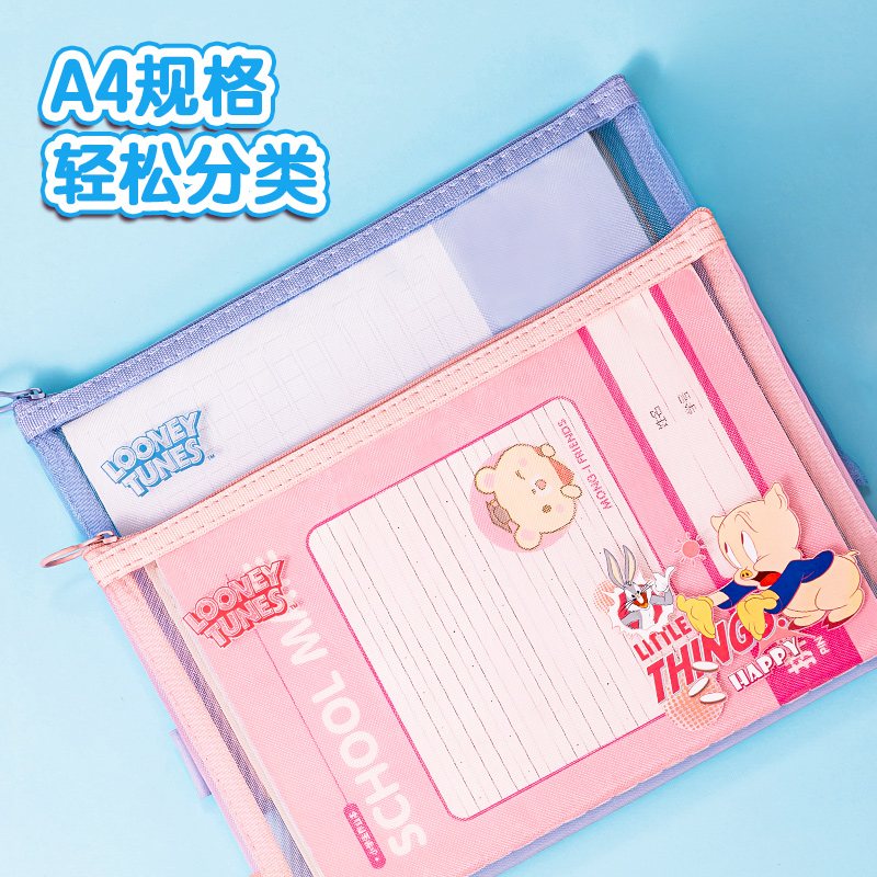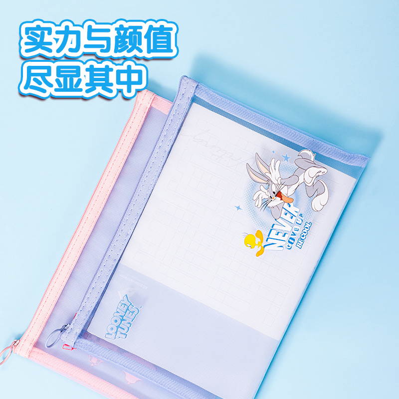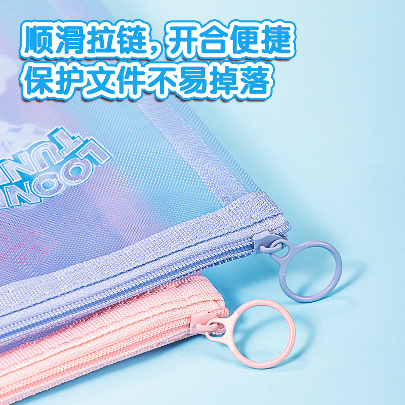 商品名称:得力PP105-A4文件袋-兔巴哥网纱拉链袋(混)(个