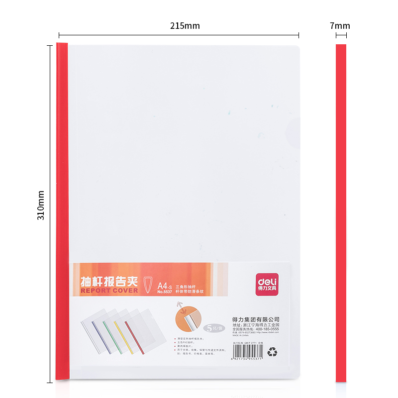 商品名称:得力5537文件夹-抽杆夹(混)(5只/包)