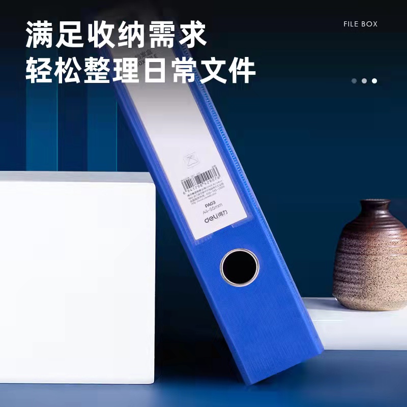 商品名称:得力PA03档案盒-包纸板档案盒-背宽55MM(蓝)(个)