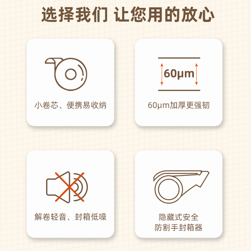 商品名称:得力30041胶带-小卷芯静音封箱胶带48mm*60m*60μm(1卷/pcs(水晶)