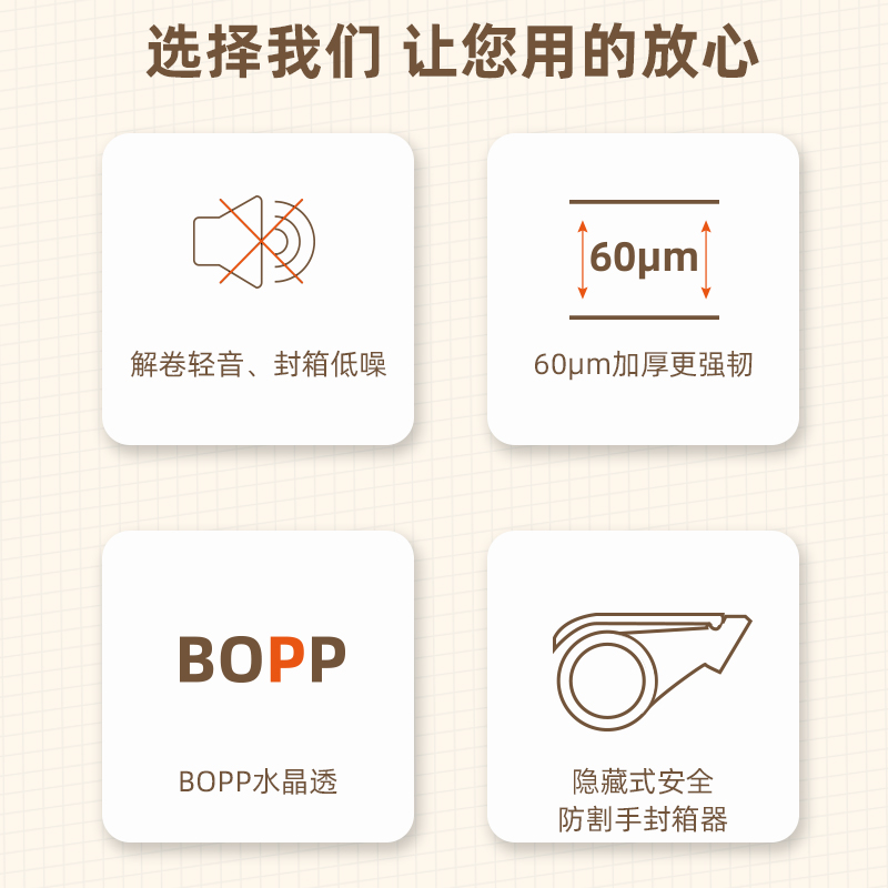 商品名称:得力30042胶带-静音封箱胶带48mm*40m*60μm(1卷/pcs)(水晶)