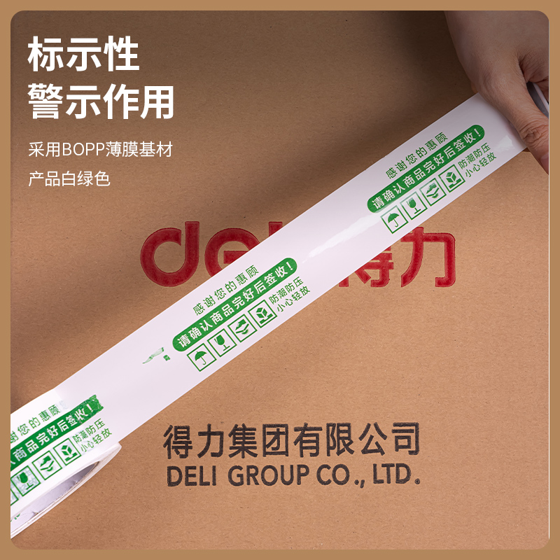 商品名称:得力品正33973快递封箱胶带42mm*100m*50μm(白底绿字)(6卷/筒