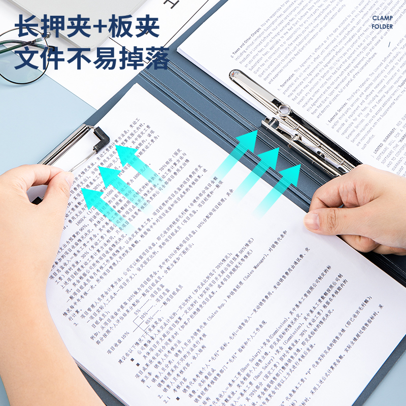 商品名称:得力5049文件夹-长押夹+板夹(蓝)