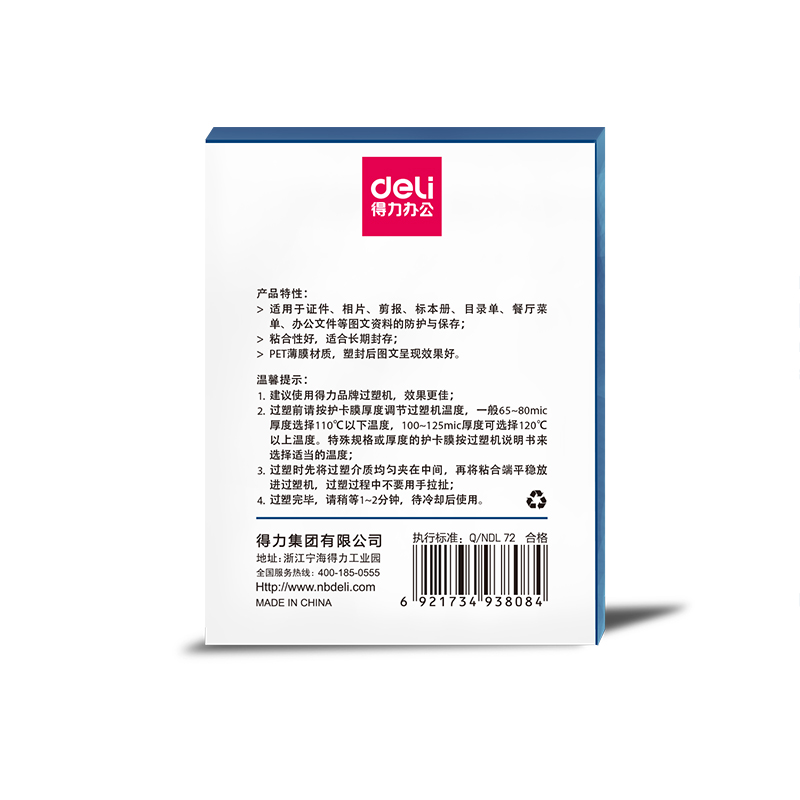 商品名称:得力3808护卡膜(透明)(100片/包)