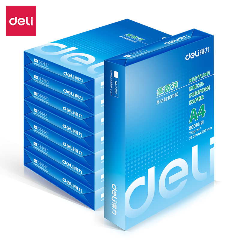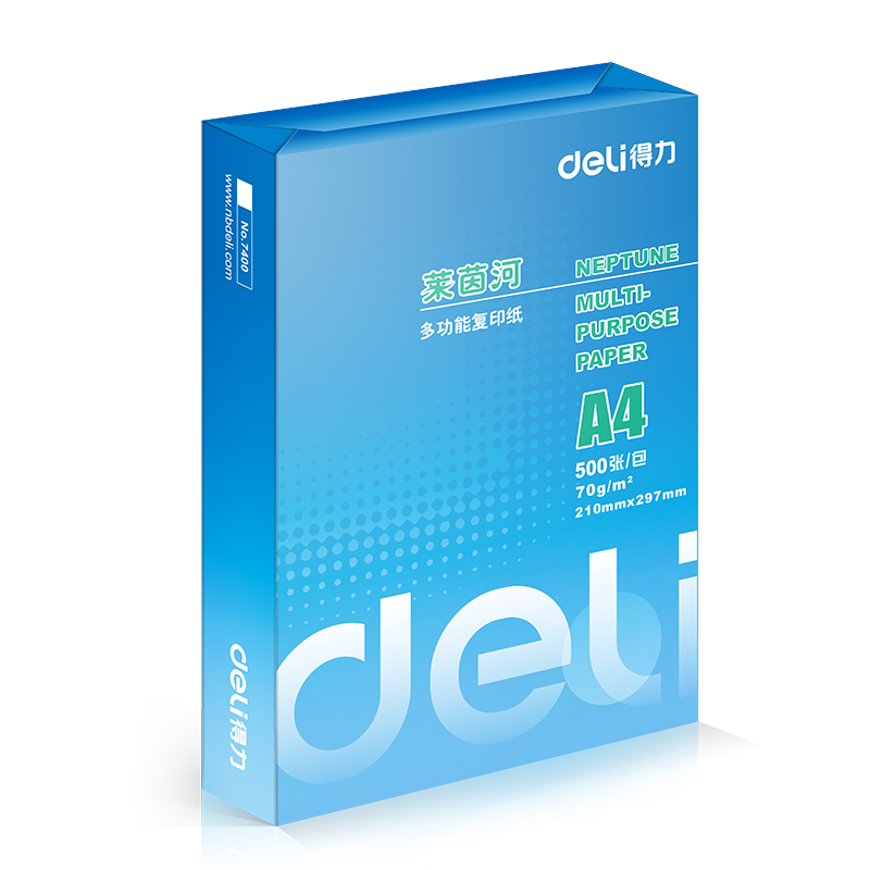 商品名称:得力7402莱茵河复印纸(A4-70g-8包)(包)